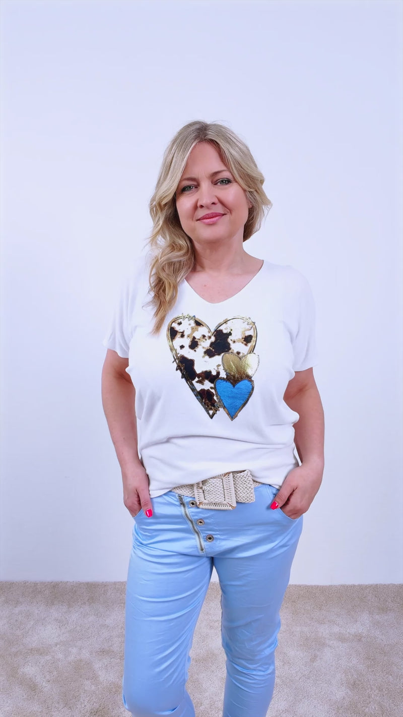 Kurzarm-Feinstrickshirt mit Herzen 2.Wahl