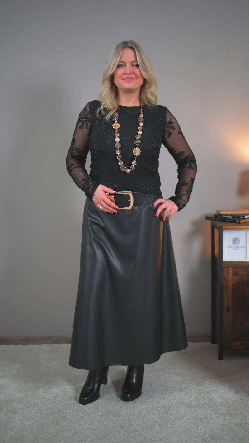 Edles, transparentes Shirt mit Beflockung mit floralem Motiv, schwarz