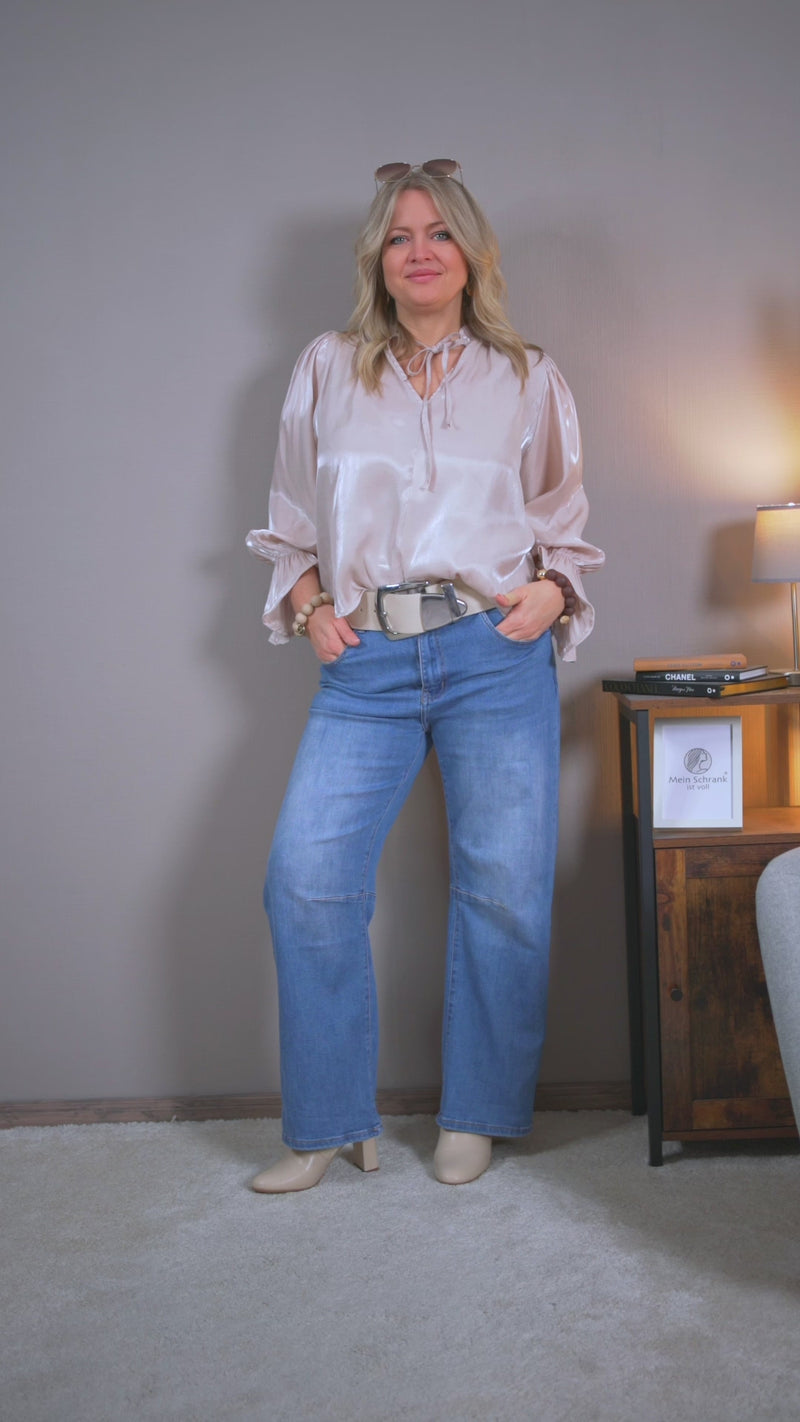 Glänzende Bluse mit eleganten Details, rosé-schimmernd