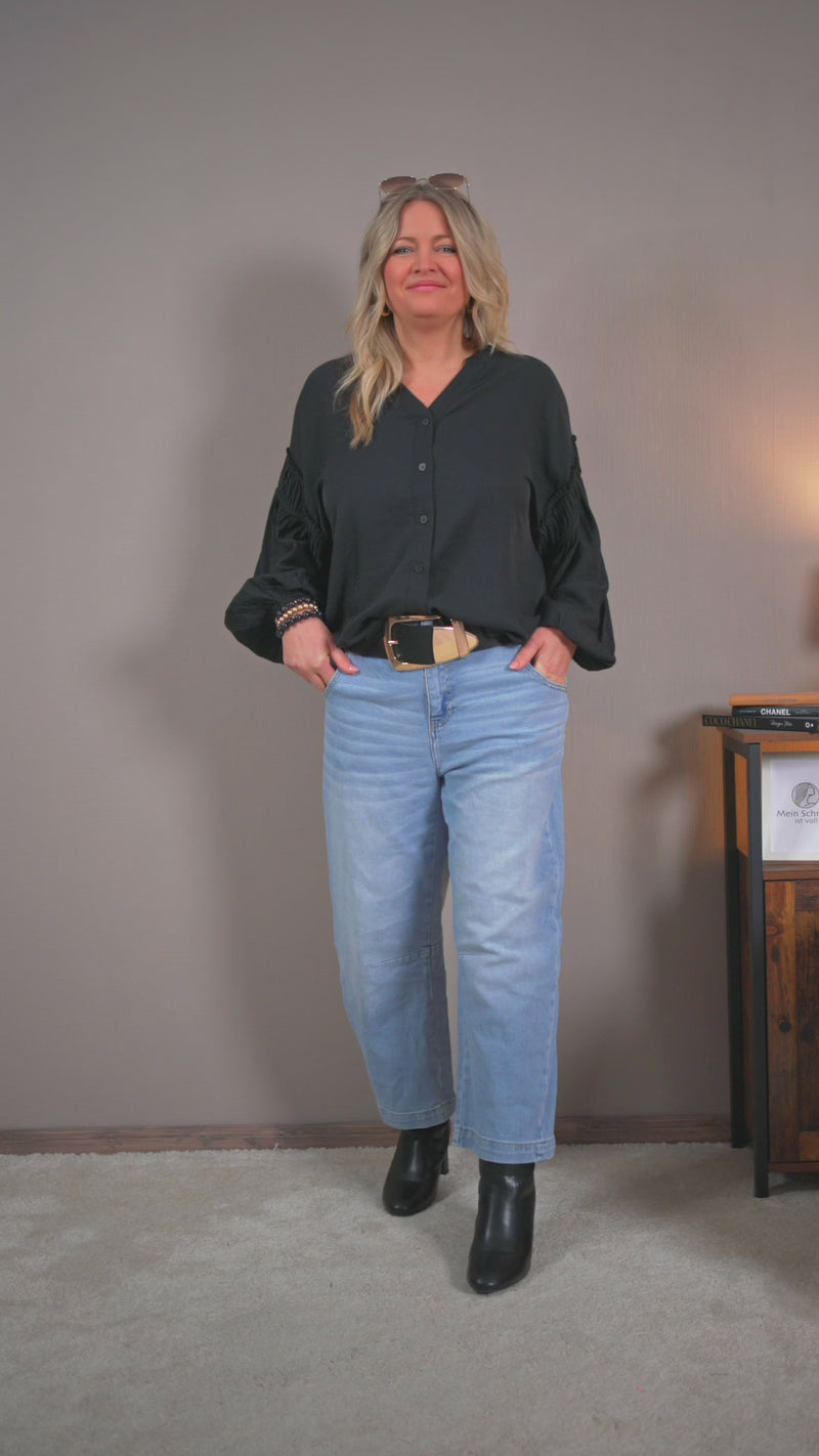 Lässige Bluse mit Stehkragen und weiten Ärmeln, schwarz
