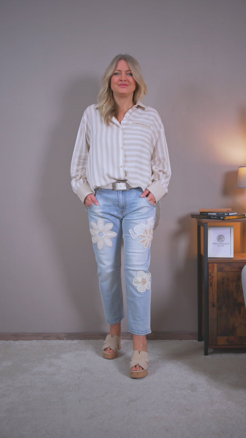 Gestreifte Bluse mit Hemdkragen, creme/beige