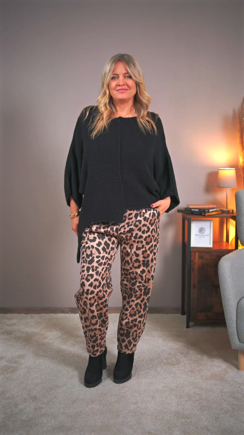 Stretchhose im Leder-Look, Leo-Print