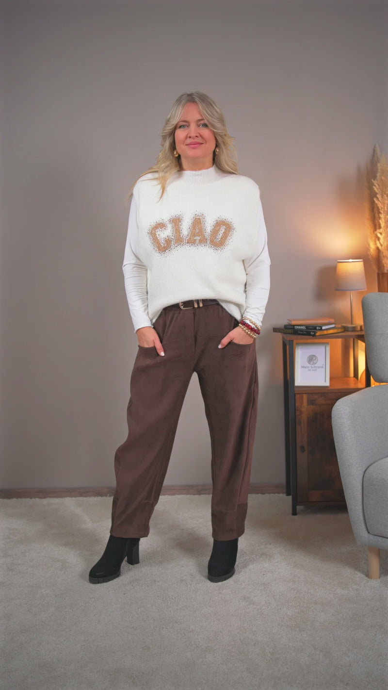 Strickpullover mit "LOVE"-Schriftzug, taupe